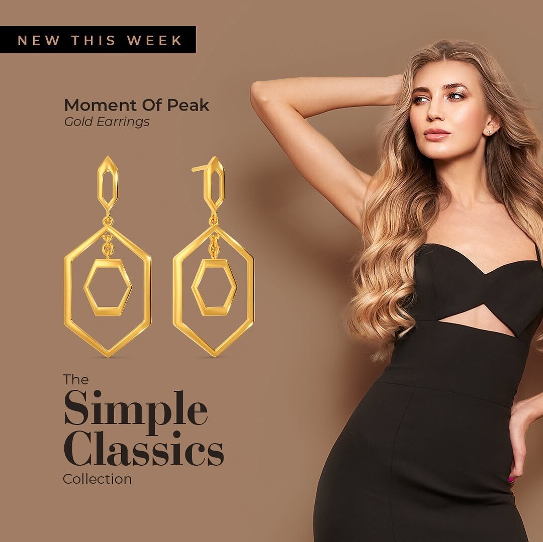 Geometric gold earrings shine bright. Called "Moment of Peak," they grab attention. Their sharp lines and angles suggest modern elegance. Part of the "Simple Classics Collection," these earrings show how fashion can blend simplicity with style. New arrivals excite shoppers. Fresh pieces often attract interest. Gold symbolizes luxury, while geometric shapes reflect contemporary trends.