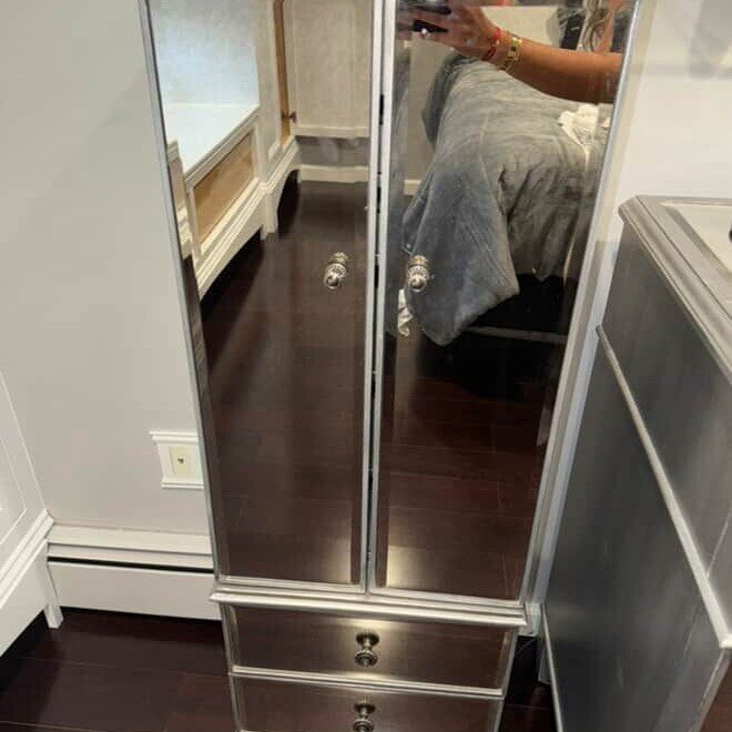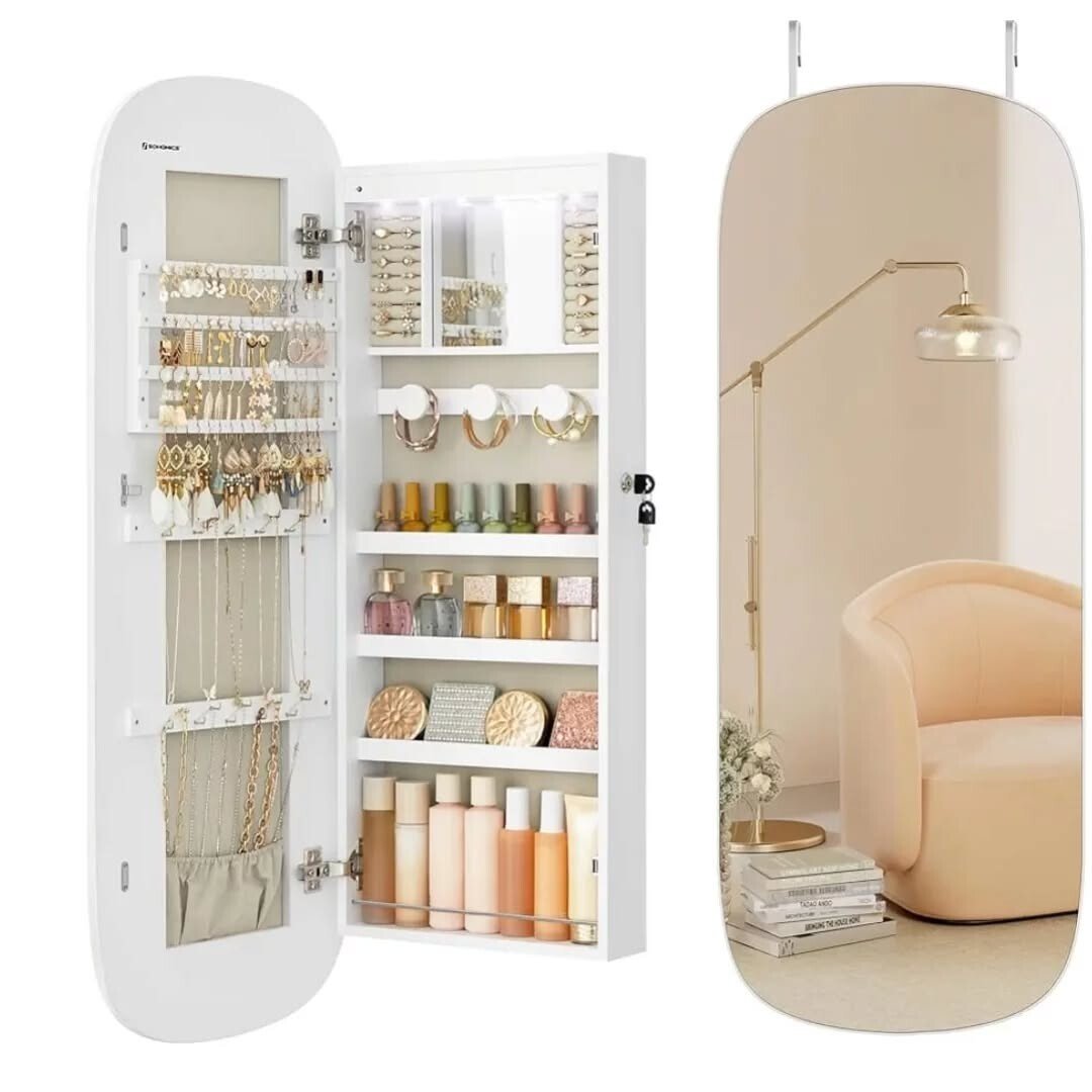 Shiny Mirrored Jewelry Cabinet with Bright Natural Light