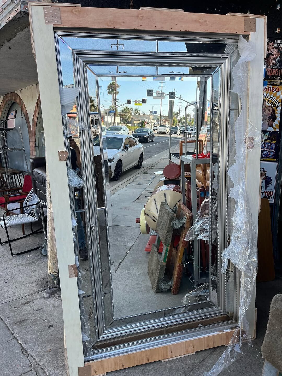 The mirror, partially wrapped in protective plastic, tells a story of anticipation. It hints at new beginnings. The wooden braces secure it, emphasizing care in preparation. Mirrors symbolize reflection, both literal and metaphorical. They invite viewers to see beyond surface.