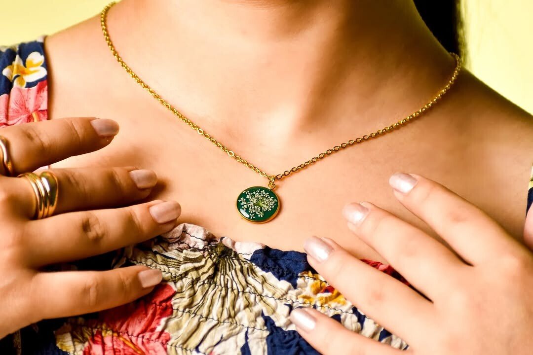 Preserved flowers in resin link to eco-conscious trends. They highlight sustainability in fashion. Unique pieces like these promote individuality. Jewelry becomes more than adornment; it embodies memories and emotions. A beautiful blend of aesthetics and sentiment.
