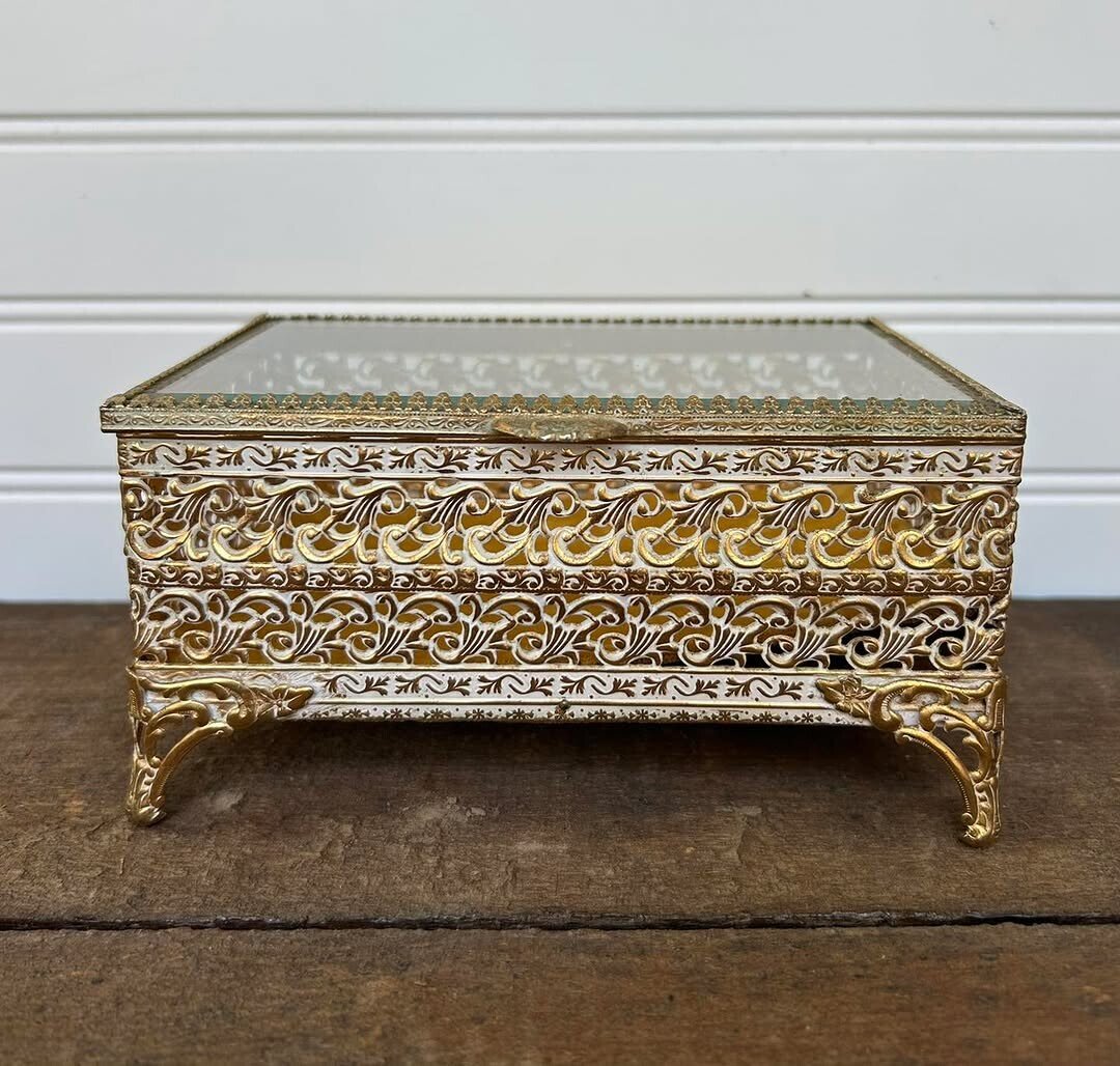 Legs are delicately curved. They elevate the box, giving it grace. Such design elements connect to historical trends in decorative arts. Filigree work often symbolizes wealth and status in cultures.