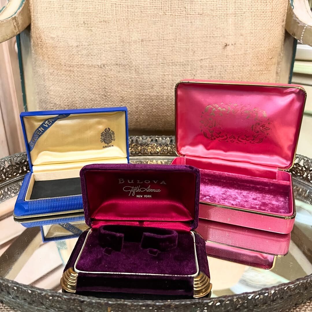Rich burgundy box, labeled "Bulova," suggests sophistication. Known for fine watches, Bulova connects craftsmanship with style. The color burgundy often evokes warmth and power. Together, these boxes reflect themes of luxury, sentiment, and tradition in jewelry presentation. They reveal how packaging enhances perceived value. Each box tells a story, inviting exploration of contents within.