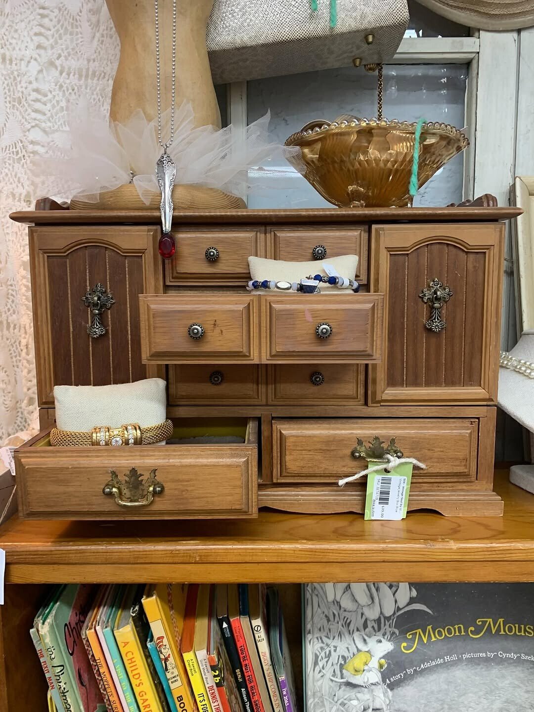 Charming Wooden Jewelry Cabinet with Vintage Touches