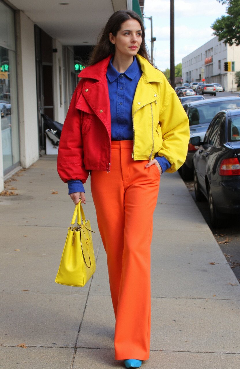 Mix bold colors for a fun, energetic aura. Color blocking is all about being bold and fearless.