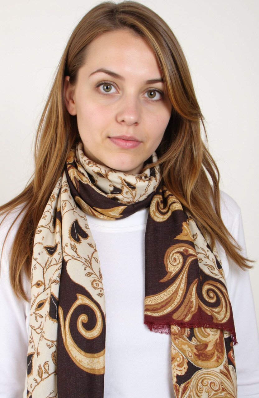This scarf features designs inspired by the intricate art seen atop your favorite lattes. The swirling patterns add a touch of elegance.