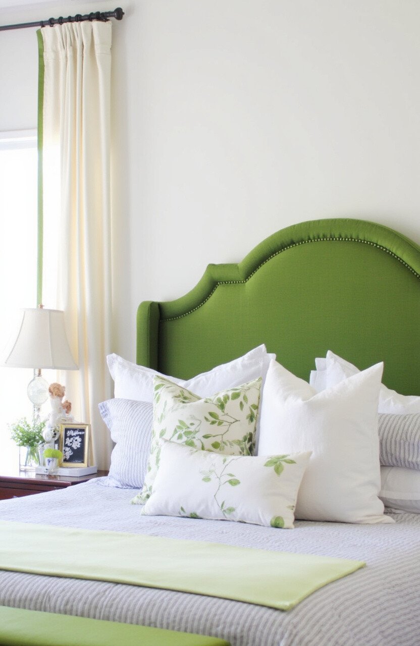 Make a bold statement in your bedroom with a dill green headboard. It’s an unexpected touch that can transform the whole vibe of your room. Imagine waking up to a burst of color that energizes your day.