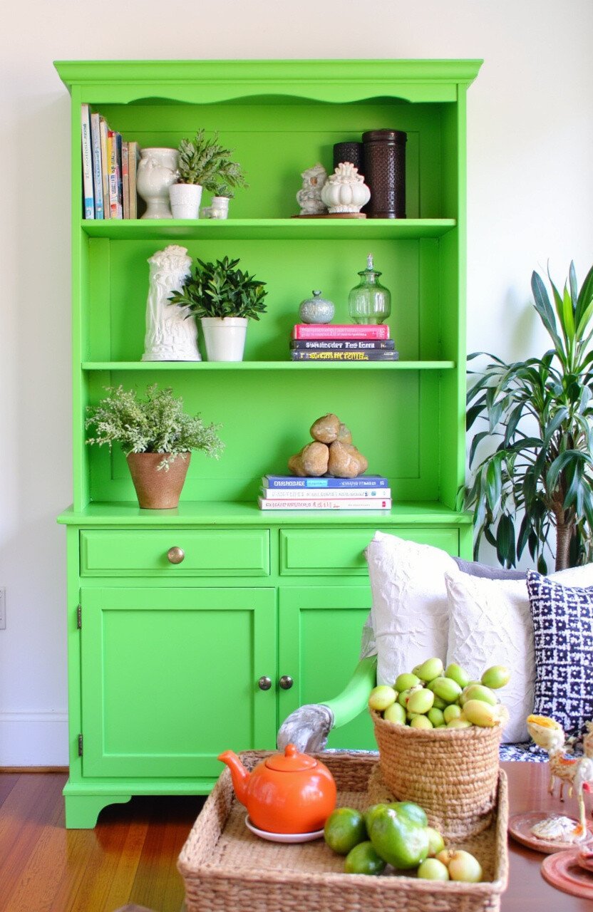 Update a tired bookshelf with a coat of dill green paint. This will turn an ordinary piece of furniture into a stunning focal point. It’s like having a mini garden to house your favorite reads.