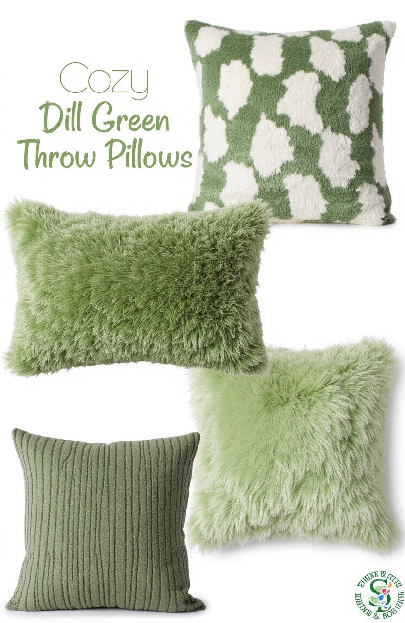 Add softness and comfort to your living room with dill green throw pillows. These pillows can be mixed with other earthy tones for a cozy, layered look. Imagine sinking into a sofa adorned with these plush accents.