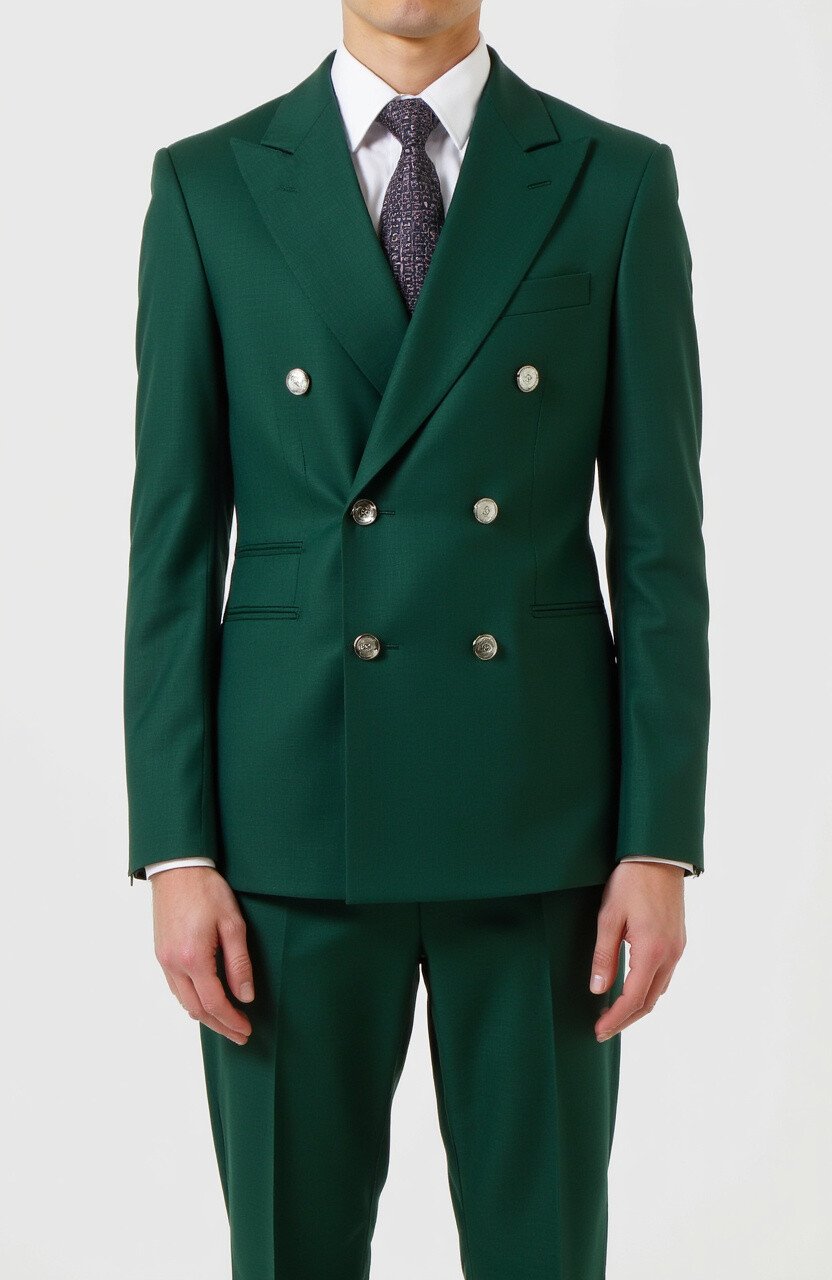Double-breasted suits are making a comeback, and a forest green one is both trendy and classic. It’s perfect for those who want to make a bold statement. The extra buttons add an element of sophistication.
