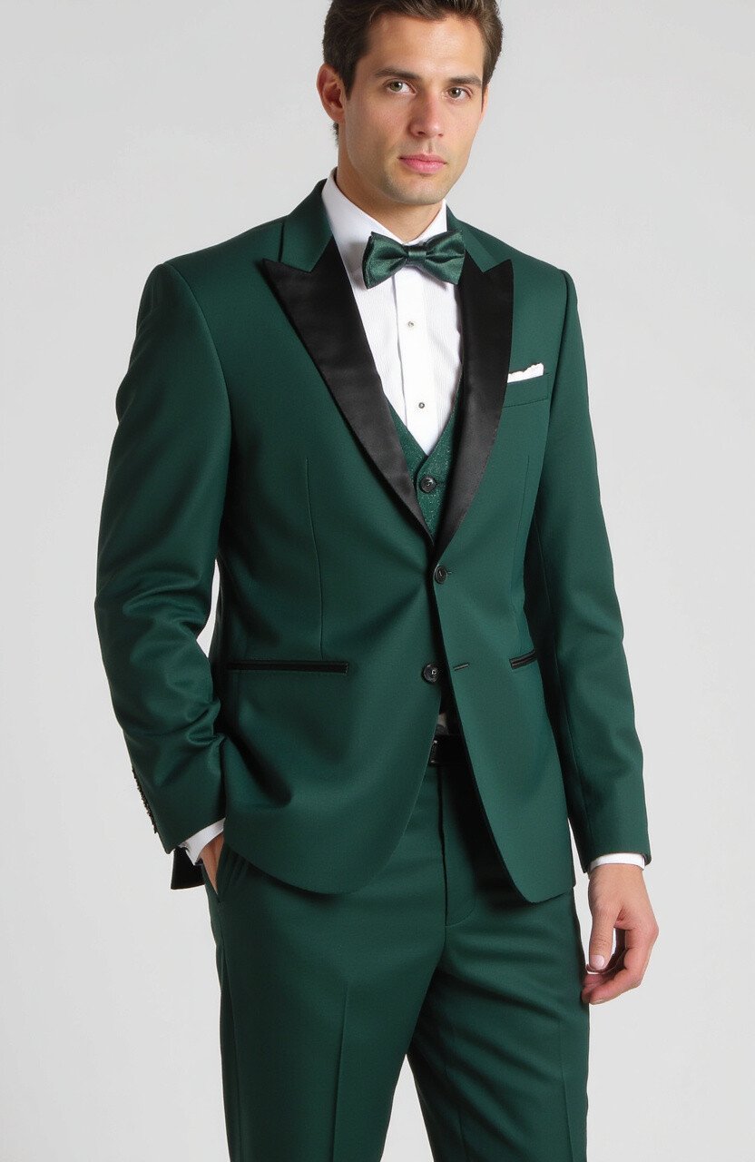 For those special nights, a forest green tuxedo is the perfect choice. It’s elegant and gives off an aura of confidence and sophistication. With satin lapels, this tuxedo offers a subtle sheen that catches the light beautifully.