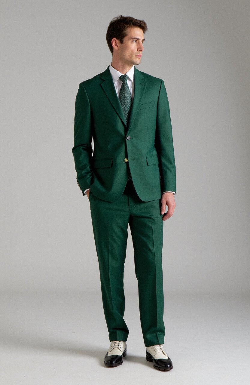 Embrace retro vibes with a forest green suit featuring vintage cuts or patterns. It’s perfect for those who love nostalgic fashion with a modern twist. The vintage-inspired design adds character and charm.