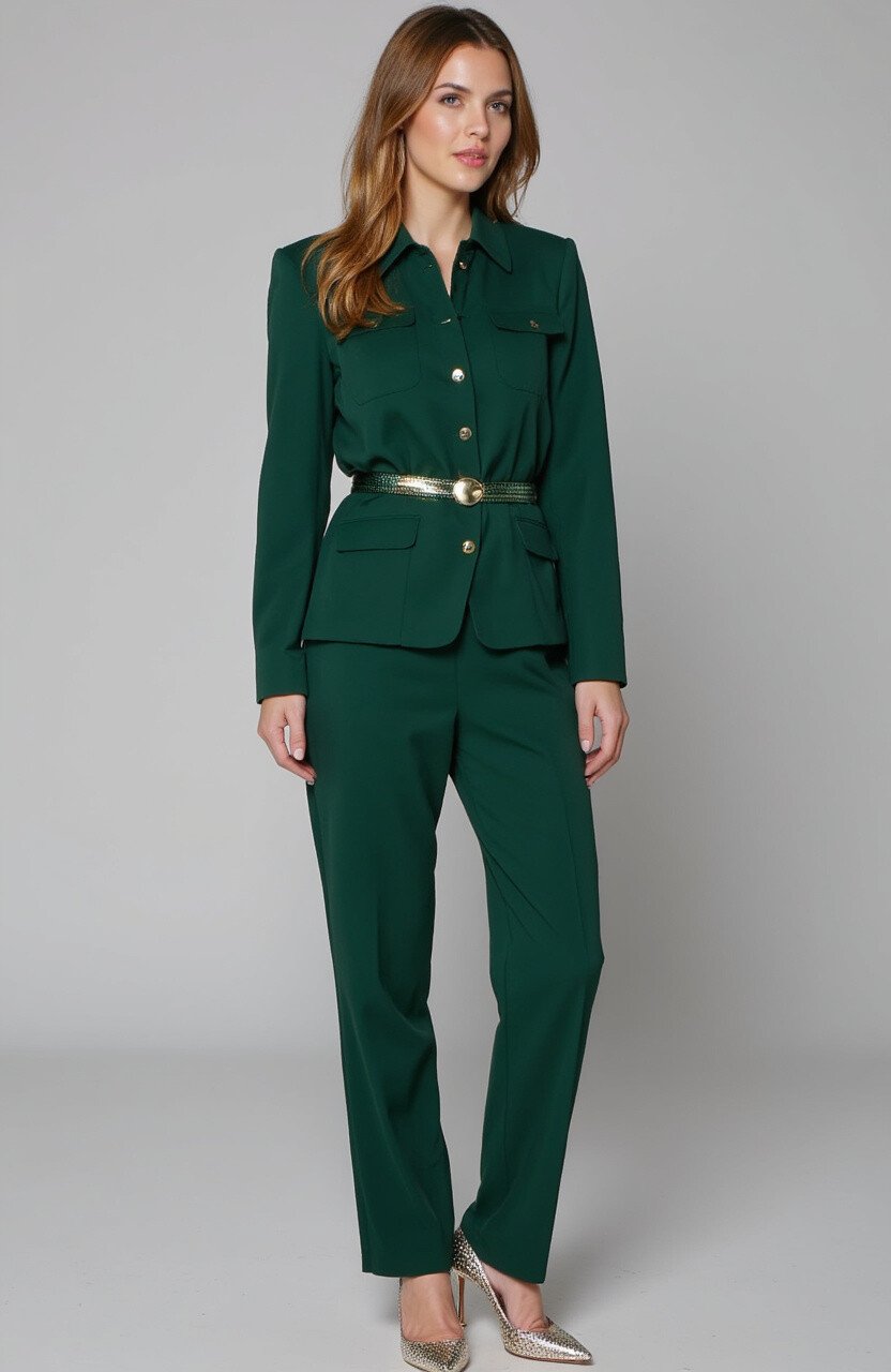 For a touch of glam, choose a forest green suit with metallic accents. It’s perfect for evening events where you want to shine. The metallic elements can be in the form of buttons, threads, or accessories.