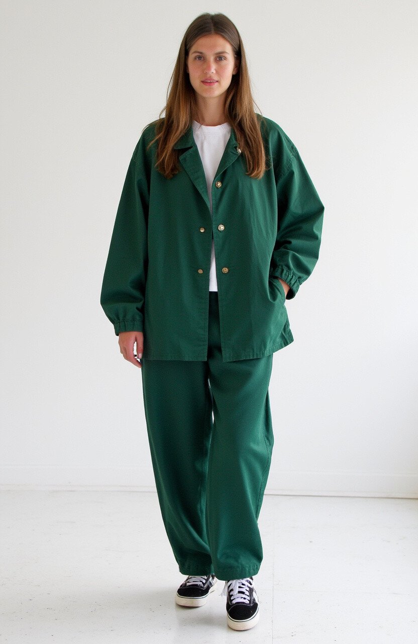 Oversized suits are trending, and a forest green version offers a relaxed yet chic look. It’s perfect for casual outings or when you want a comfortable yet stylish outfit. The loose fit provides ease of movement.