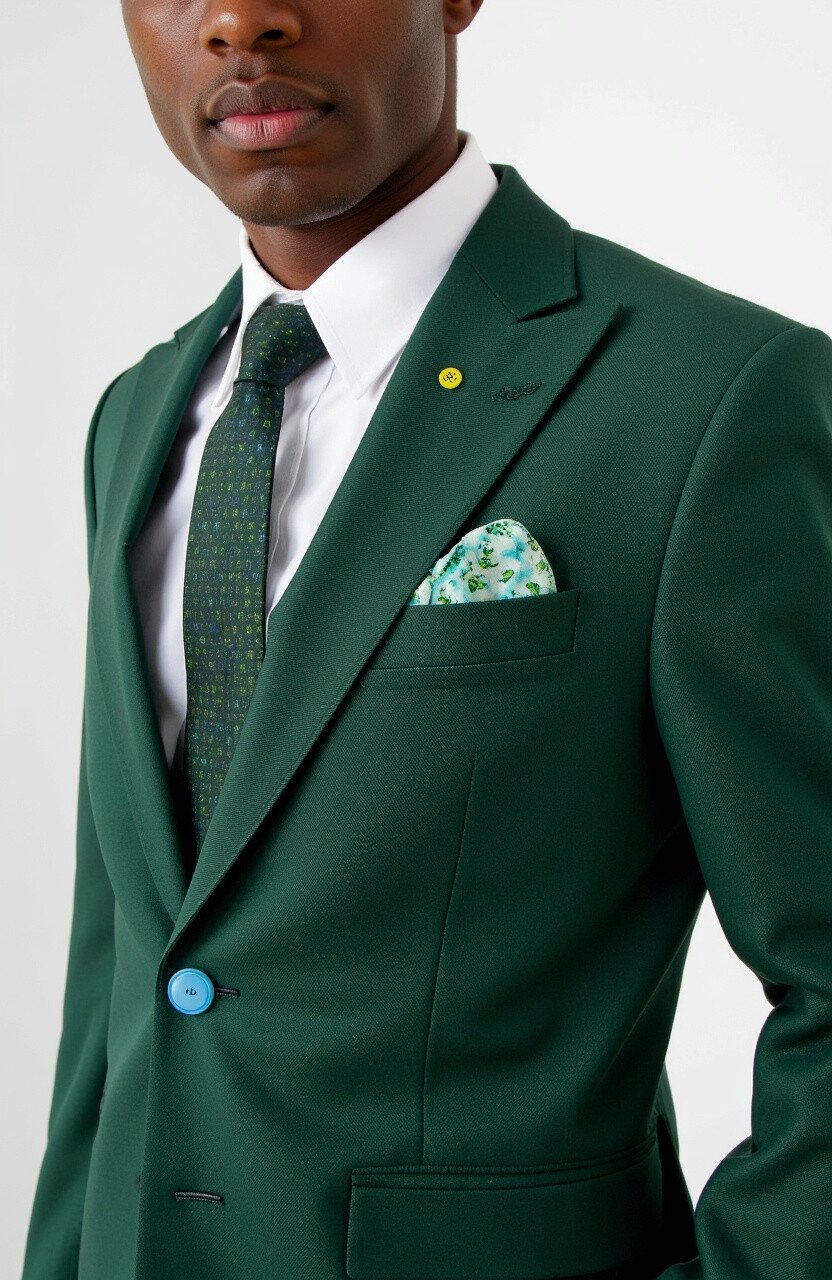 Sometimes, it’s not just about the suit but the accessories you pair it with. A forest green suit with bold accessories like a bright tie or colorful pocket square can make a powerful statement. It’s perfect for expressing your personality.