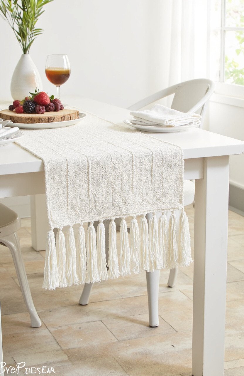 Dress up your dining table with a fringe table runner. It adds a touch of elegance and texture, perfect for special occasions or everyday use. Choose colors that complement your dinnerware for a cohesive look.