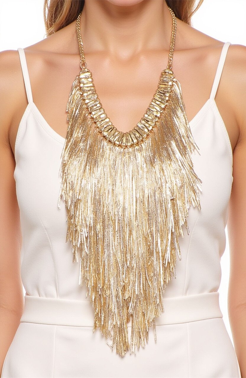 Make a bold statement with fringe necklaces. These eye-catching pieces add drama and style to any outfit. Perfect for elevating a simple top or dress.