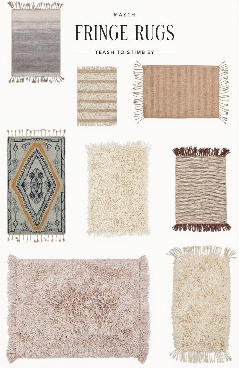 Enhance your floors with the unique texture of fringe rugs. They add a bohemian flair and a touch of coziness to any room. Perfect for living rooms or bedrooms, they create a welcoming atmosphere.