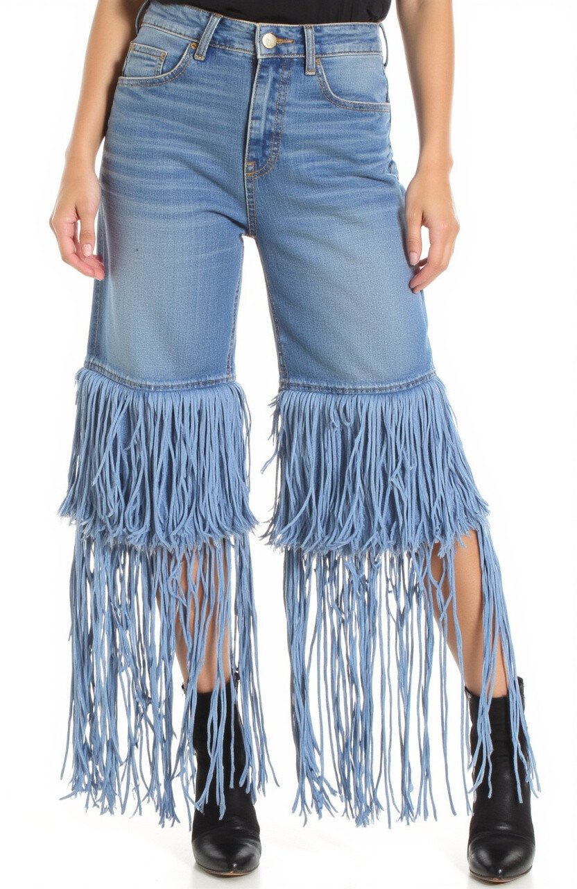 Fringe jeans are the perfect blend of classic and edgy. The cascading fringe adds movement and flair, catching eyes with every step. They’re great for casual outings or music festivals.