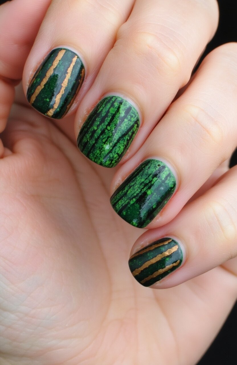 Feel the magic of the woods with Enchanted Forest nails. Deep greens and earthy browns mimic the lushness of a forest, right on your fingertips.
