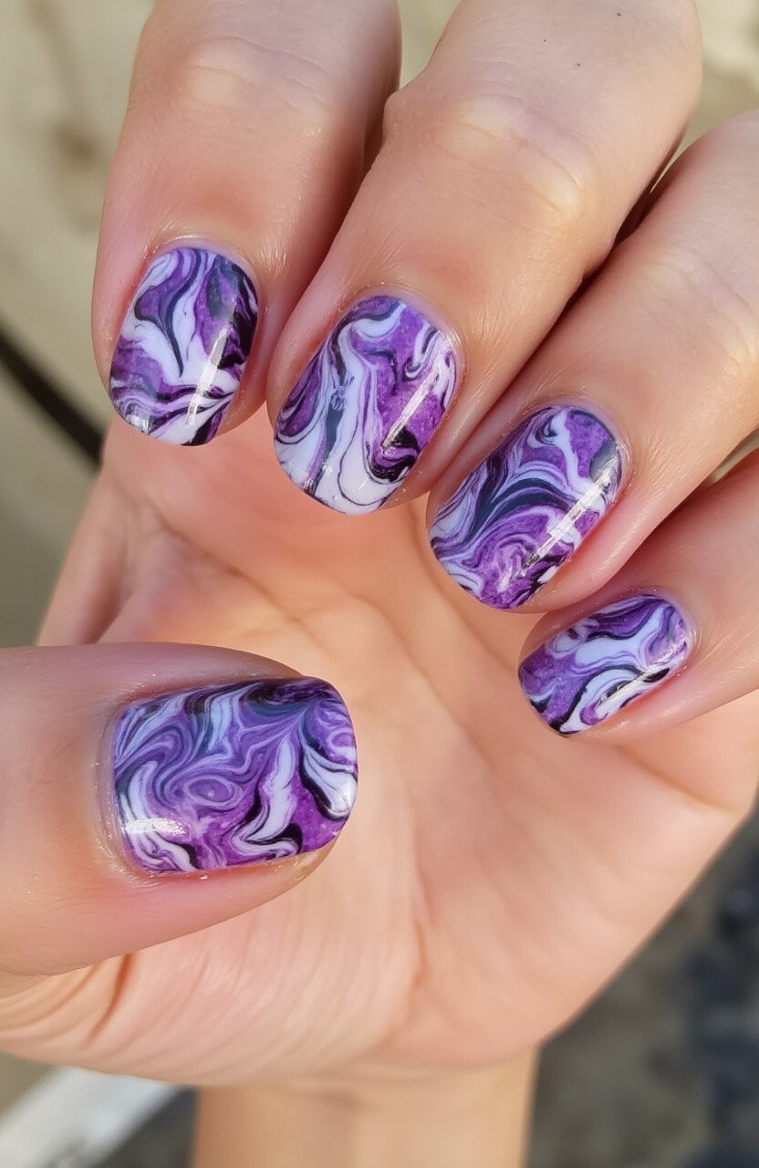 Get ready to wow with Mystical Marble nails. This design uses a mix of colors swirled together, creating a marble effect that’s both chic and mysterious.