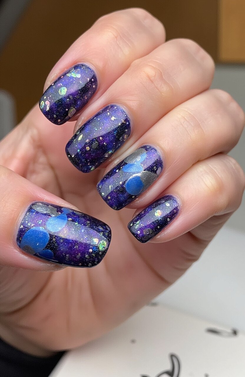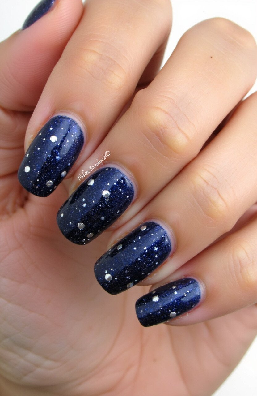 Picture a night sky full of twinkling stars captured on your nails. Celestial Starburst nails use deep blues and shimmering silvers to create a cosmic look.