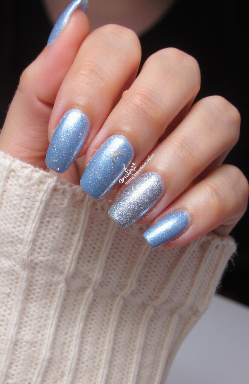 Capture the magic of the night with Moonlit Mirage nails. Soft blues and silvers create a look that’s both mysterious and beautiful.