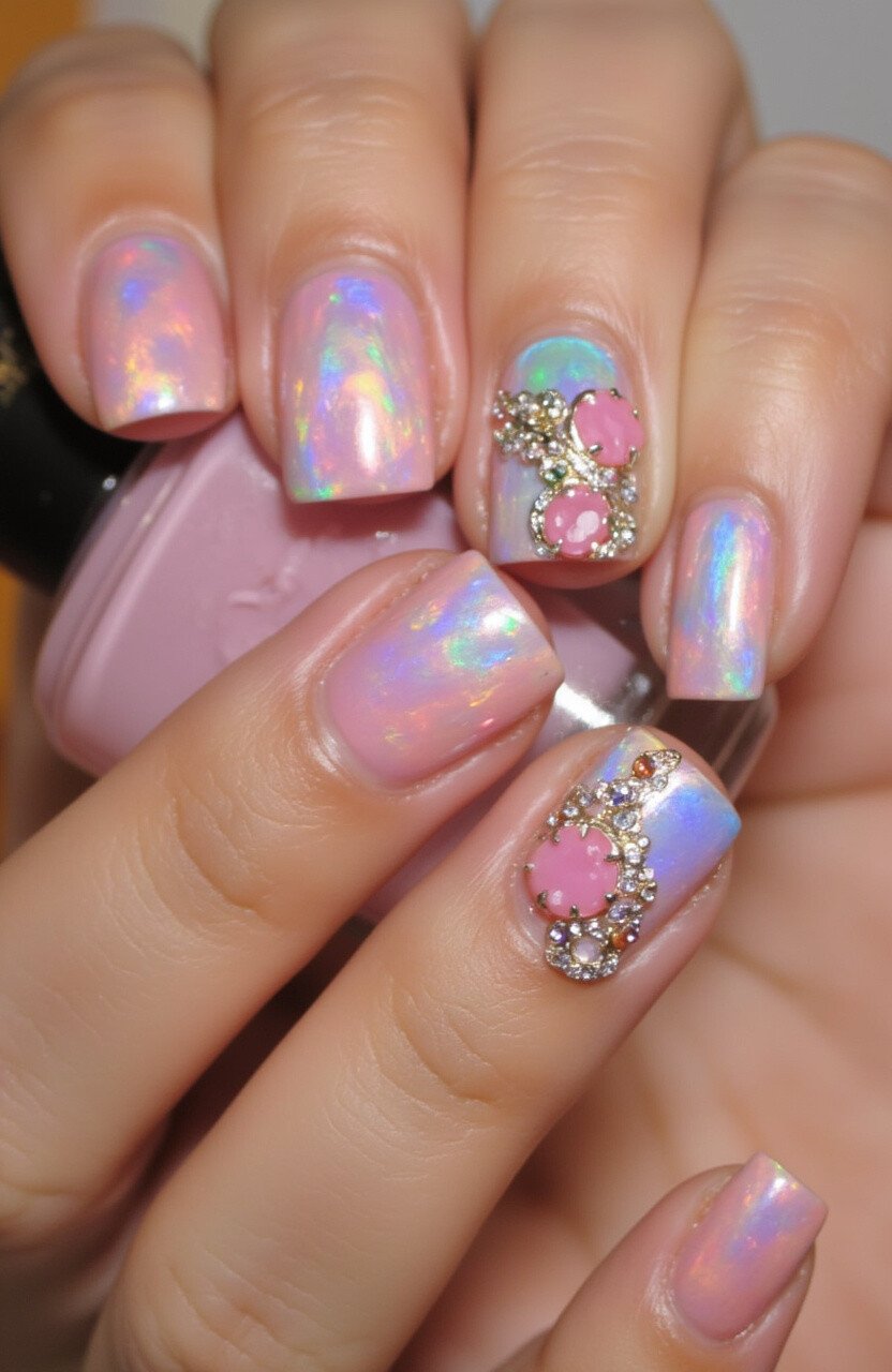 Ethereal Opal nails are all about capturing the iridescent beauty of opals. With shifting colors that catch the light, these nails are truly magical.
