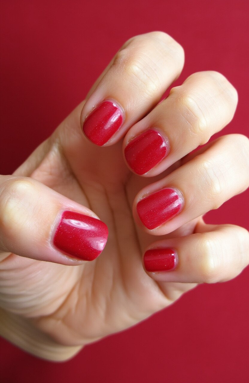 Feel like royalty with Regal Ruby nails. Deep reds and subtle shimmer create a look of luxury and elegance.