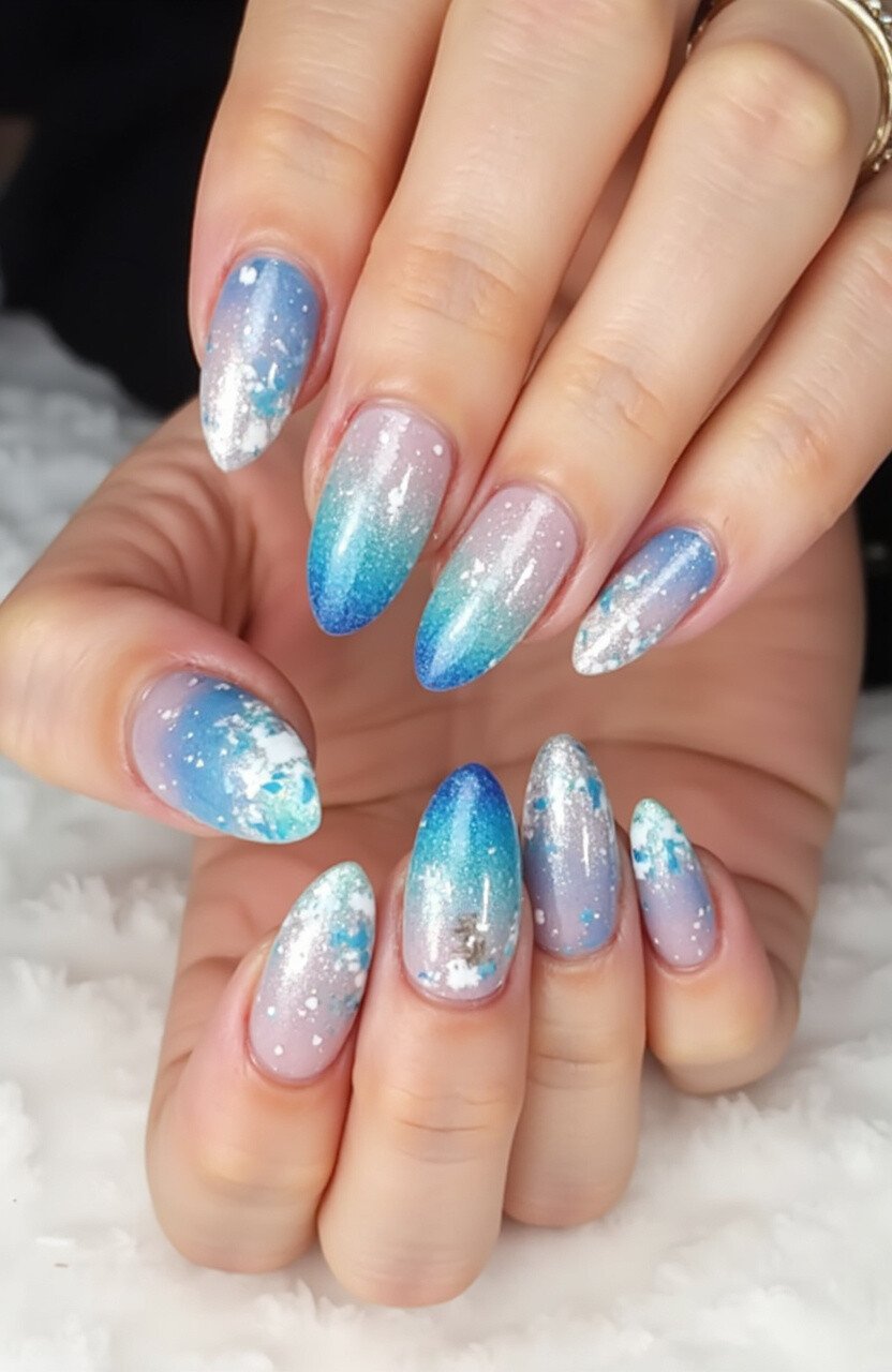 Dive into an oceanic paradise with this stunning nail design. Oceanic Oasis nails use blues and aquas to create a serene, watery effect.