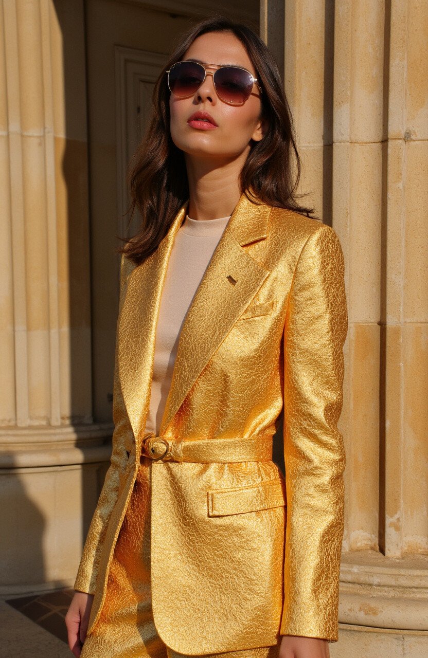 For those who love to shine, a golden jacquard suit is a must-have. This suit exudes luxury and is perfect for grand occasions where making an impression is key. The golden hue catches the light beautifully, creating a dazzling effect.