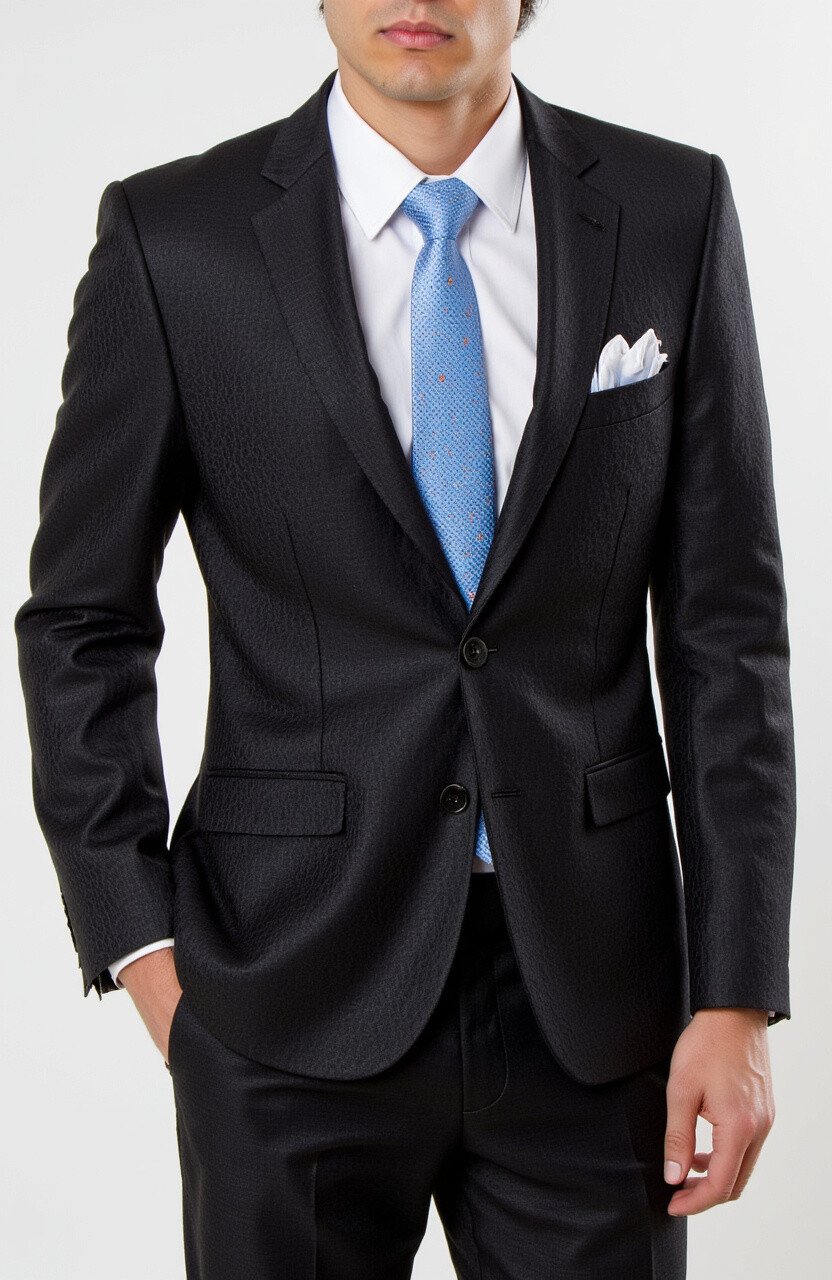 Everyone needs a black suit, but why not add a twist with a jacquard pattern? This suit takes the classic black to another level, offering texture and subtlety. Perfect for business meetings or formal dinners, it’s a wardrobe essential.