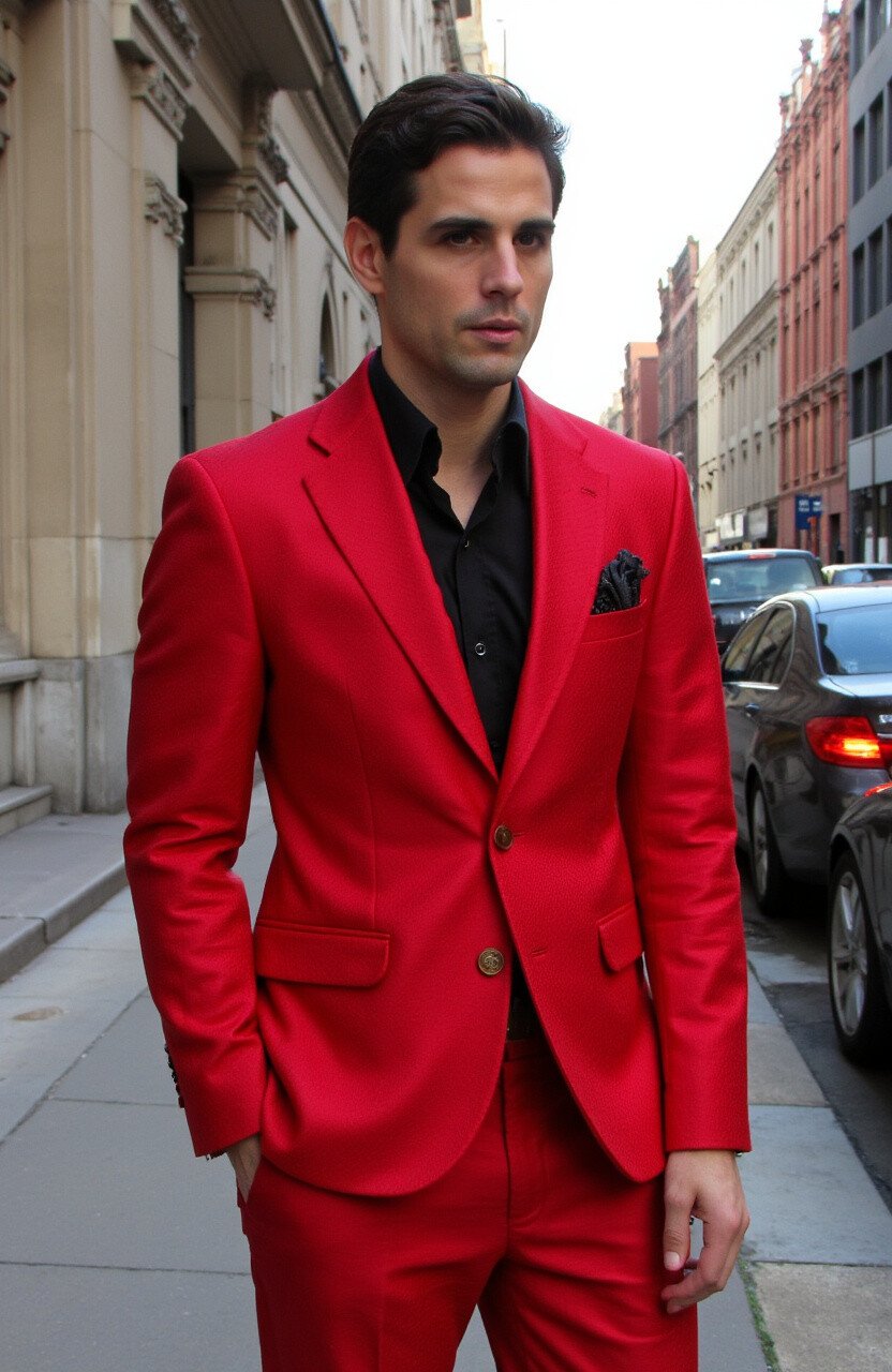 Make a statement with a bold red jacquard suit. This vibrant color is not for the shy, but it promises to capture attention. Perfect for festive events or parties where you want to be the highlight.