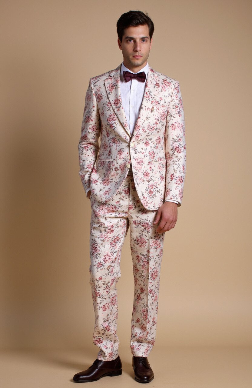 Floral motifs in jacquard suits bring a touch of elegance and romance. Perfect for weddings or garden parties, this suit offers a soft and charming look.
