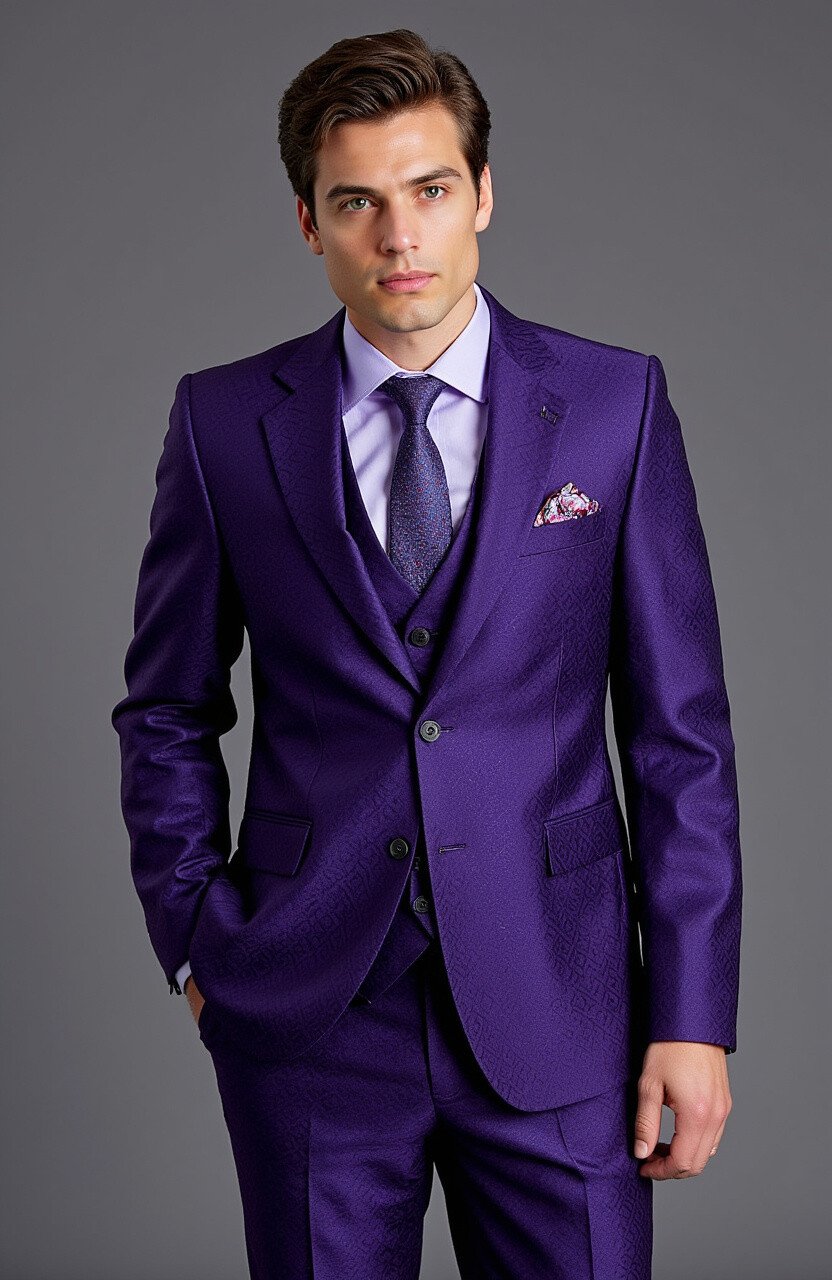 Purple is the color of royalty, and a royal purple jacquard suit is nothing short of majestic. This suit is perfect for those who want to feel like a king or queen. The rich color and intricate patterns make it an eye-catching choice.