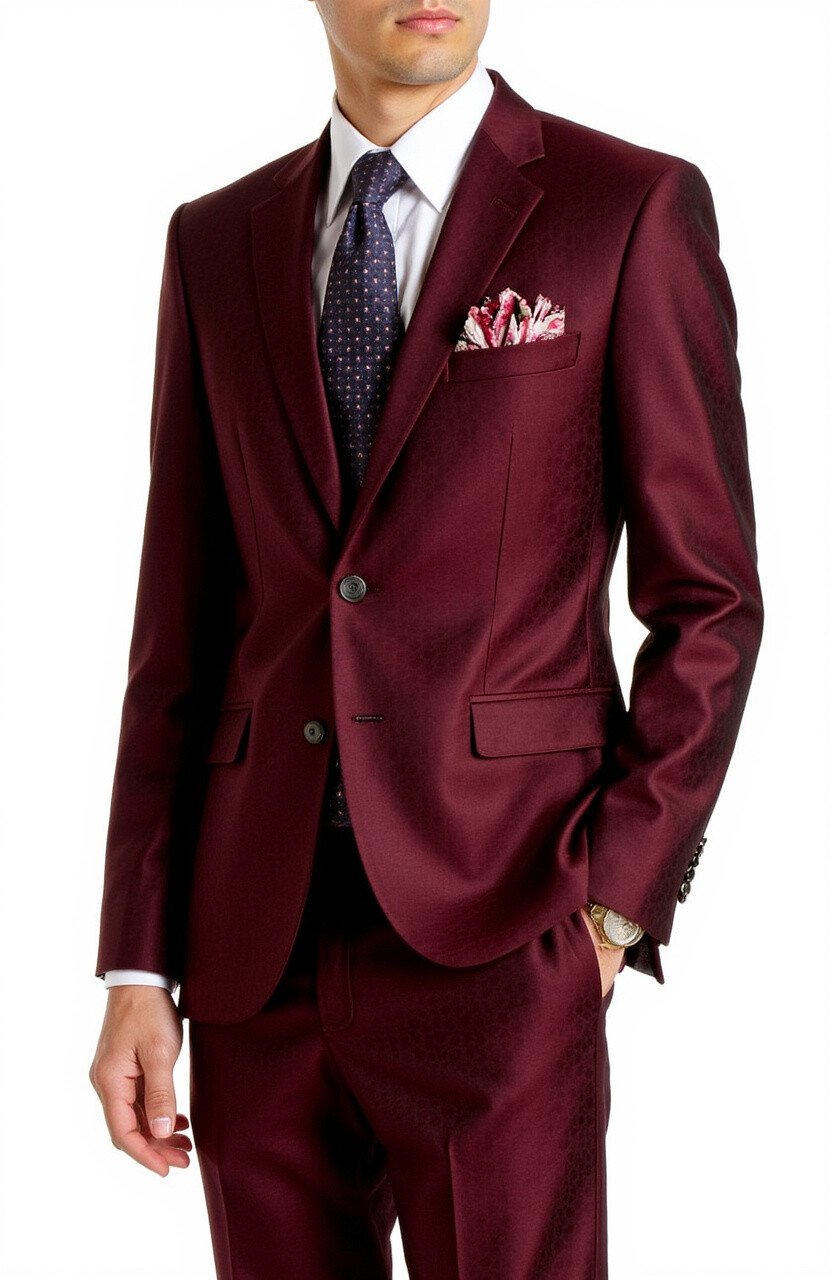 Maroon jacquard suits offer a rich and sophisticated look. Ideal for formal events, this suit speaks of elegance and class. Its deep color and detailed patterns make it a standout piece.