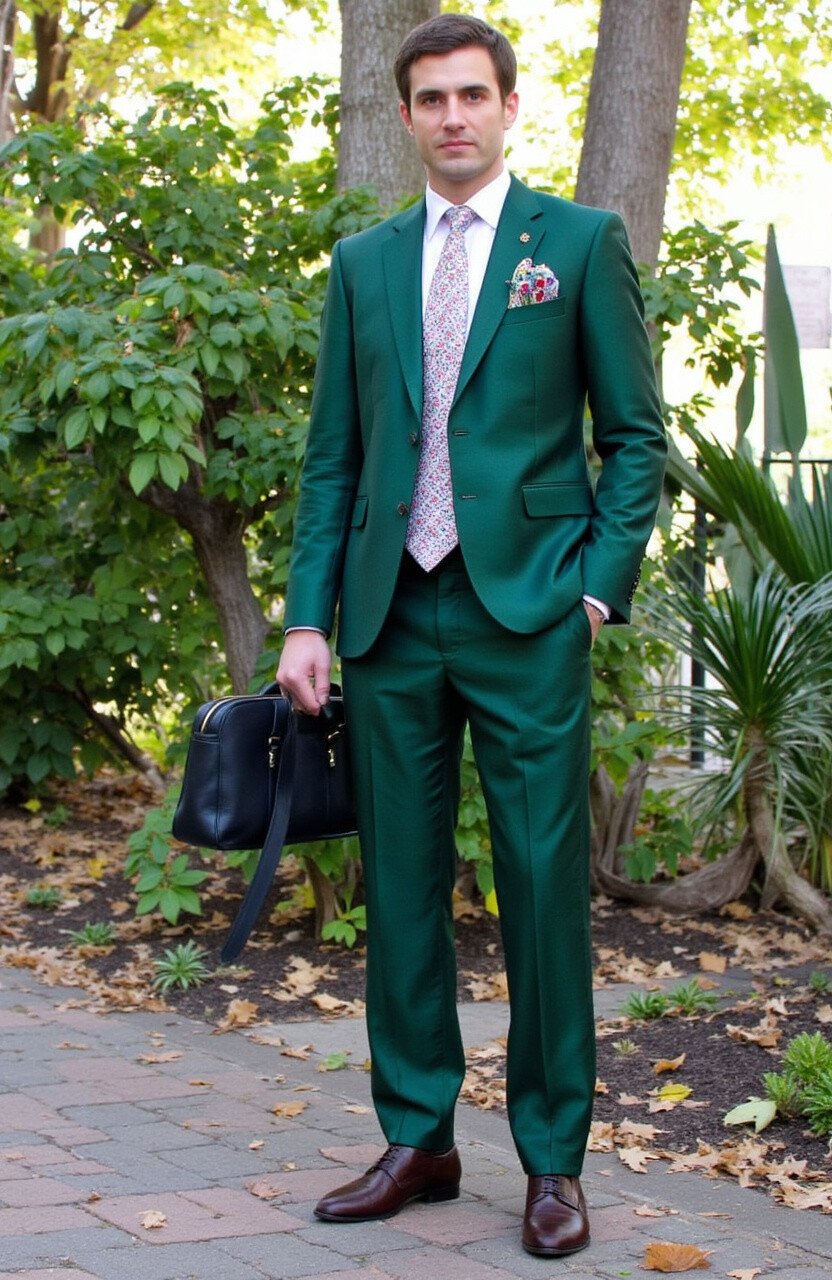Pair it with a white or light blue shirt for a cohesive look. Prices can range, but the distinctiveness of the color makes it worth the investment. This suit is like a hidden gem waiting to be discovered.