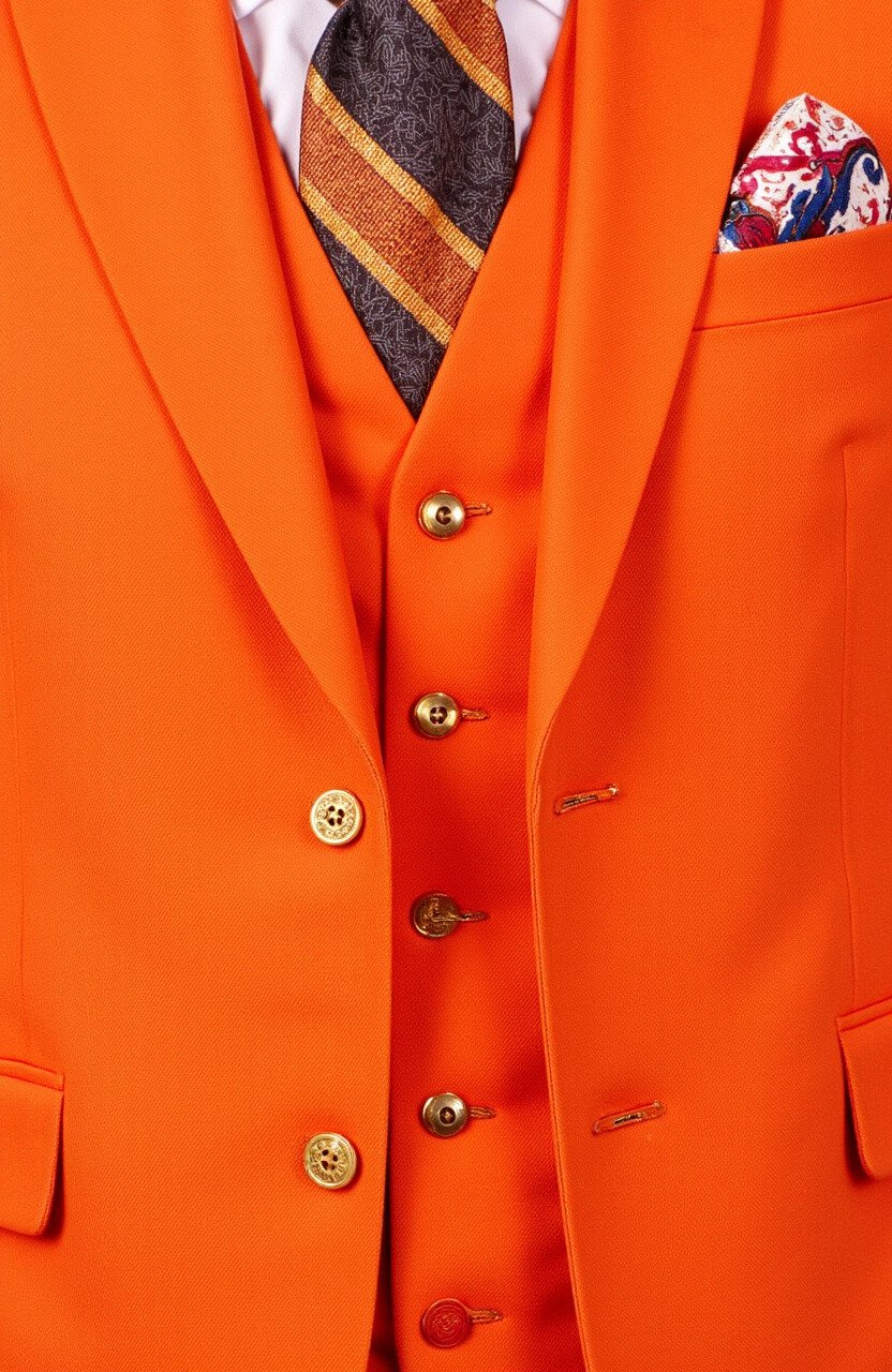 Orange jacquard suits are for the bold and adventurous. This vibrant color is perfect for summer parties or events where you want to stand out.