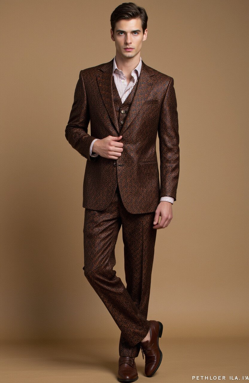 Earthy brown jacquard suits bring warmth and depth to your attire. They are perfect for autumn events and provide a cozy yet refined look. The patterns add an interesting dimension that sets you apart.