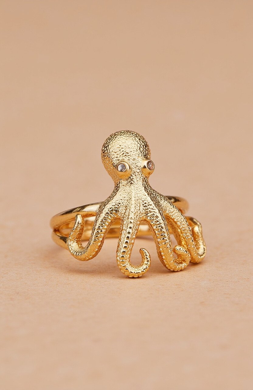 Octopuses are fascinating and mysterious, known for their intelligence and adaptability. Rings shaped like these creatures are both unique and eye-catching. They symbolize creativity and flexibility.