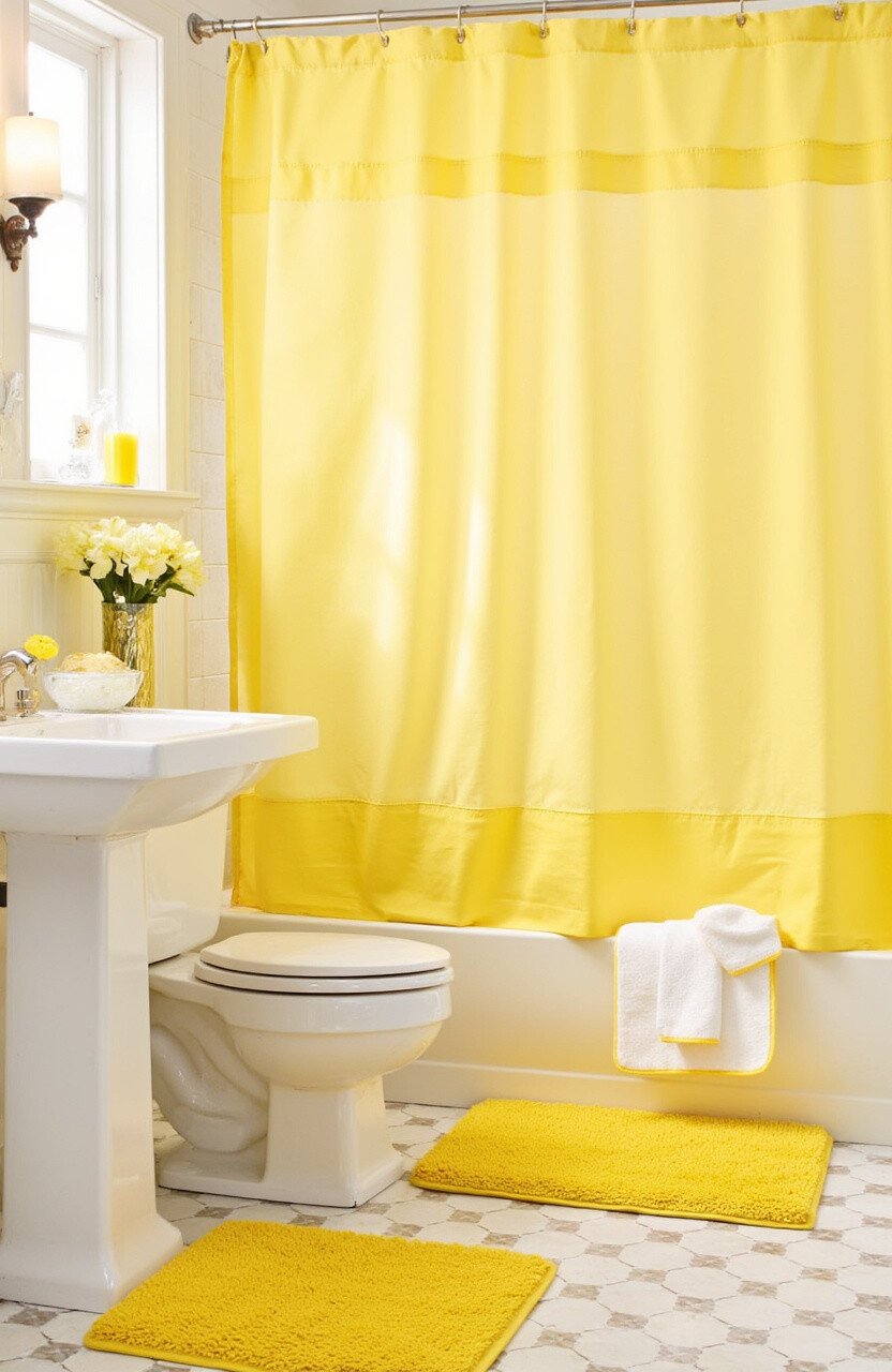 Bring sunshine into your bathroom with yellow towels, mats, and shower curtains. It’s like a mini spa retreat.