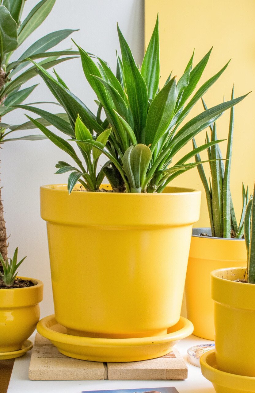 Yellow pots are available in many shapes and sizes. They can make your plants stand out.