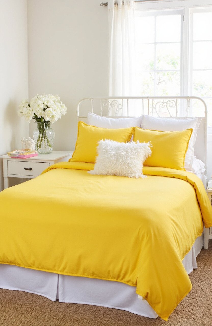 Waking up under a yellow bedspread can start your day off on a bright note. It feels like waking up with the sun.