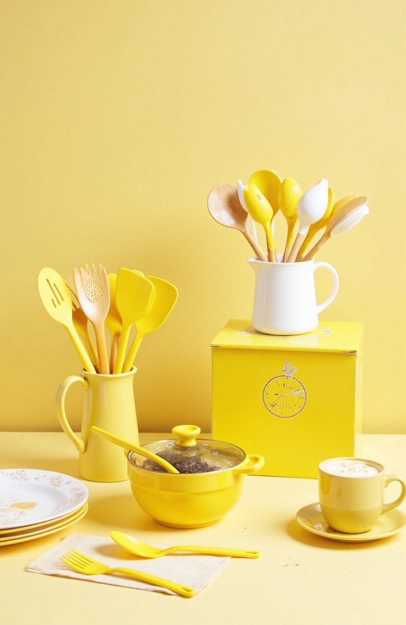 Yellow kitchenware is not only stylish but easy to find. They can make everyday tasks feel a little more cheerful.