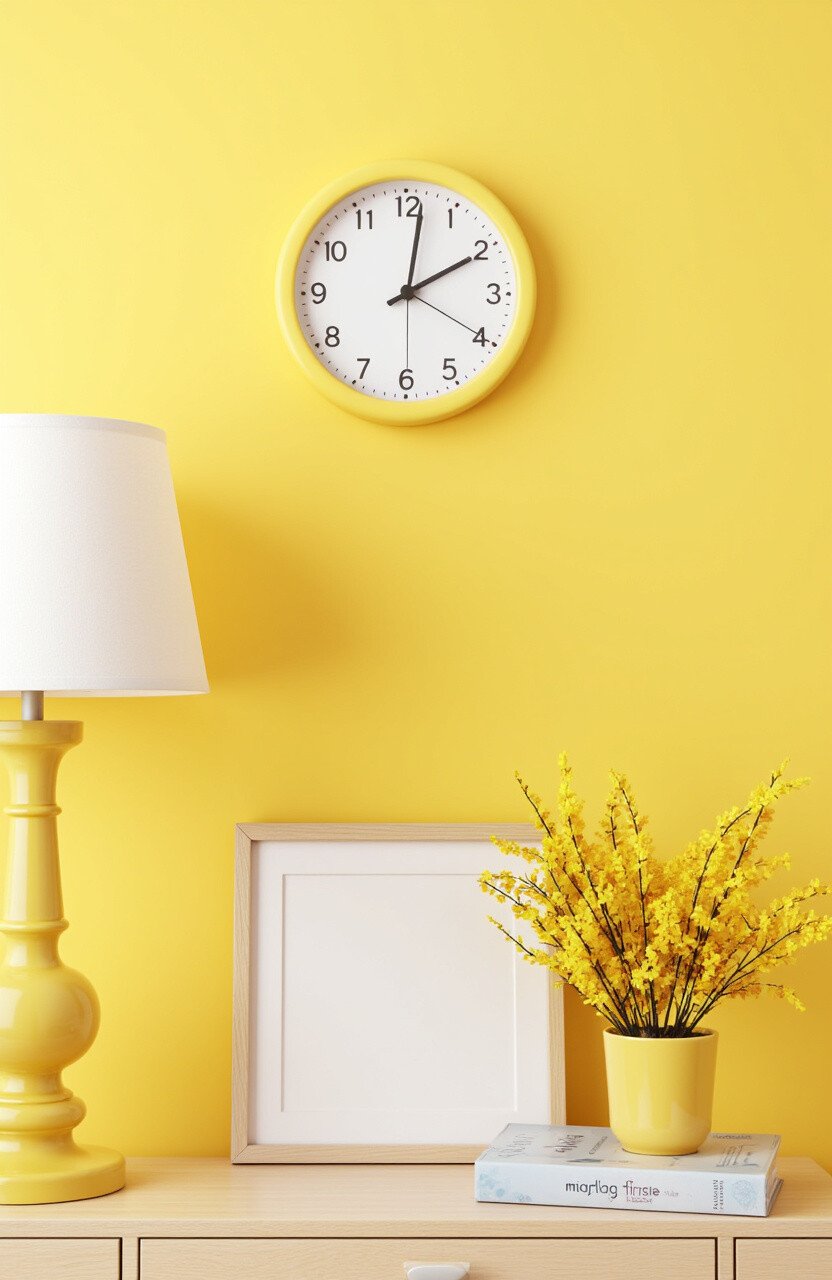 A yellow wall clock is both practical and stylish. It keeps you on time and adds a splash of color.