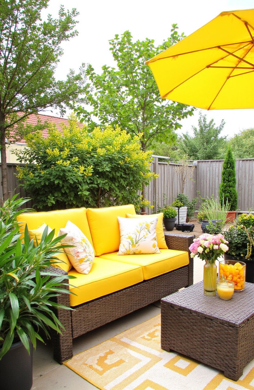 Your outdoor spaces deserve some yellow too! Think cushions, planters, or even a yellow umbrella.