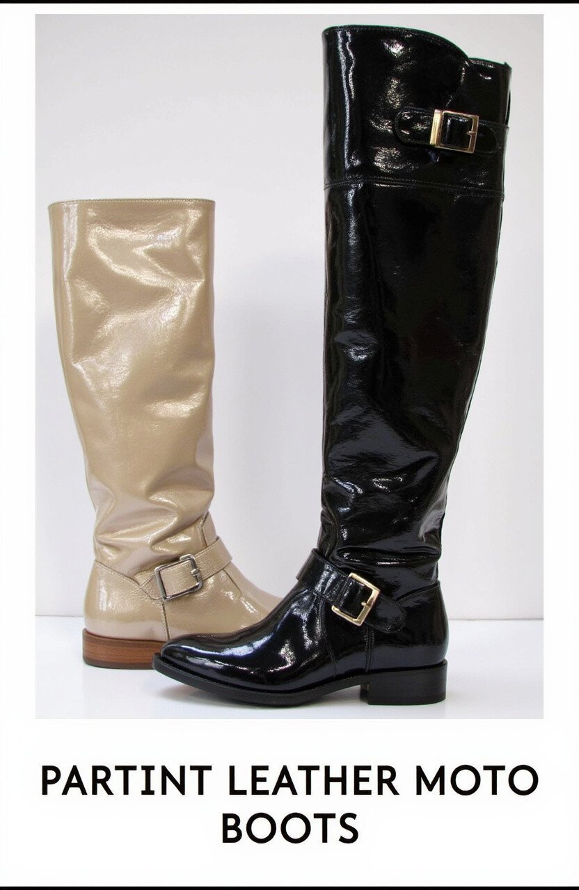 Patent leather moto boots bring shine and glamour to your footwear collection. Their glossy finish adds a modern twist to the classic moto style.