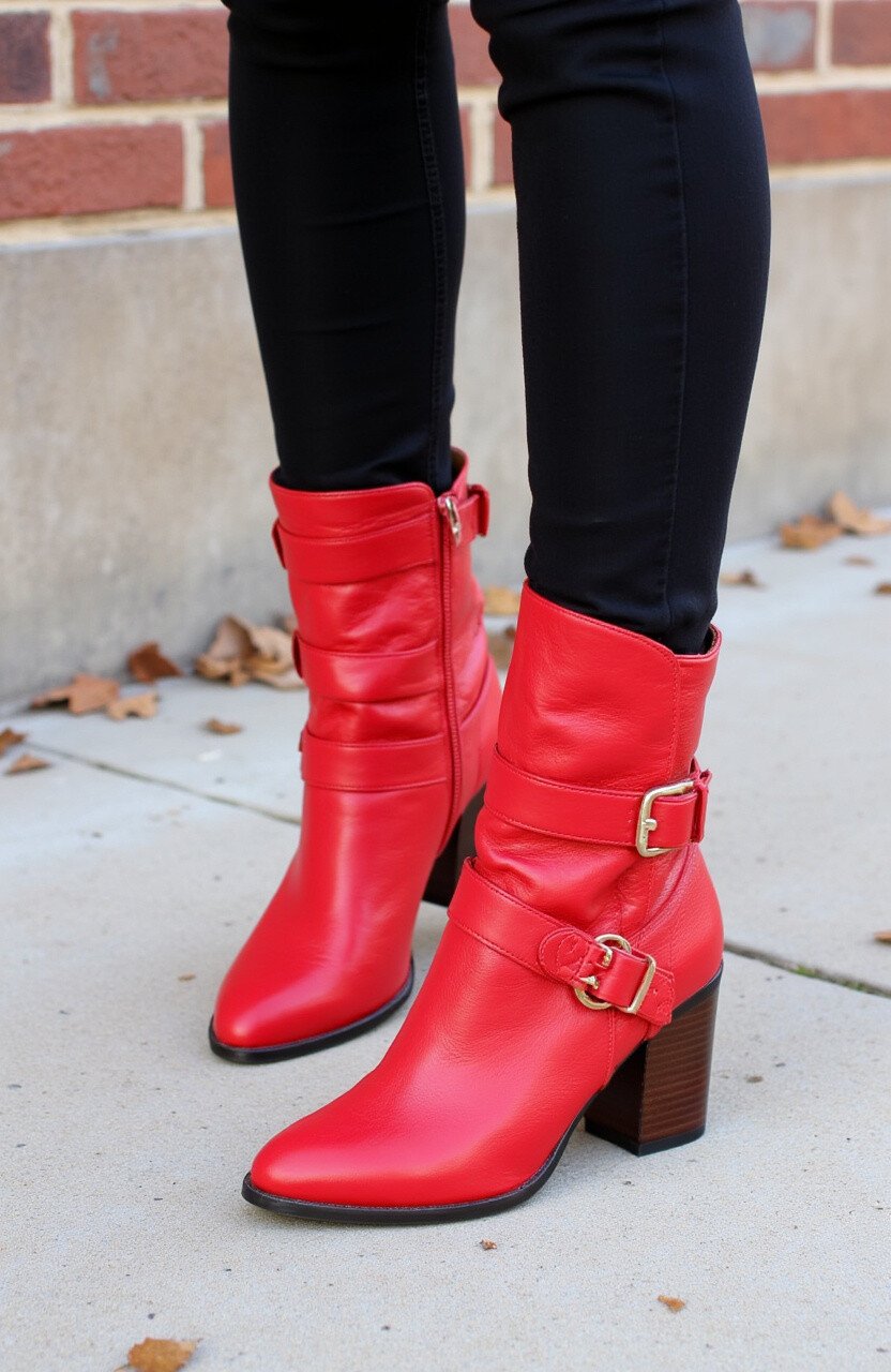 Red moto boots are the fiery statement piece your wardrobe needs. They add a pop of color that turns heads and sparks conversations. Perfect for those who love to stand out!