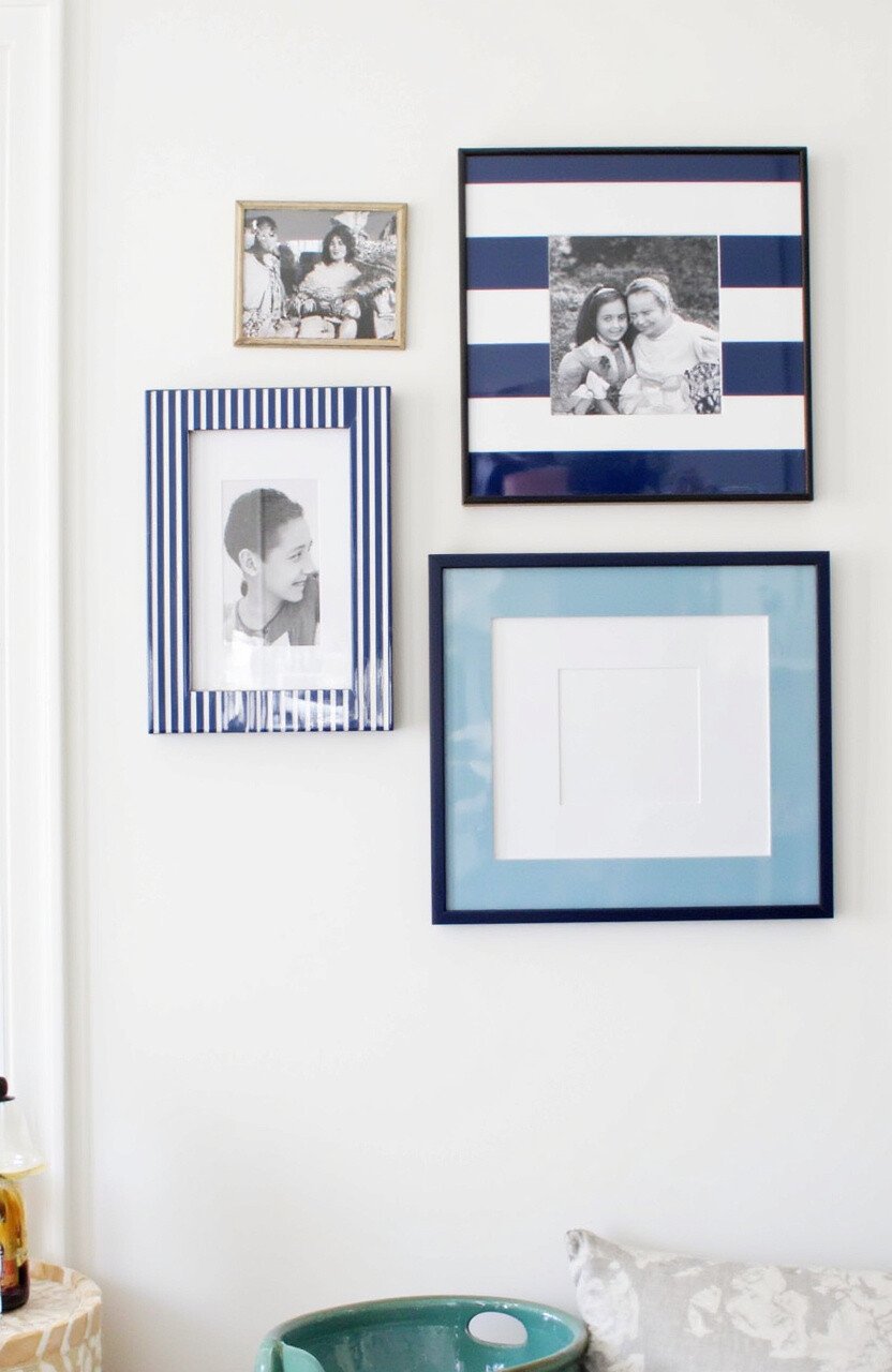 Frame your memories with navy striped picture frames. They bring a pop of color to your gallery wall.