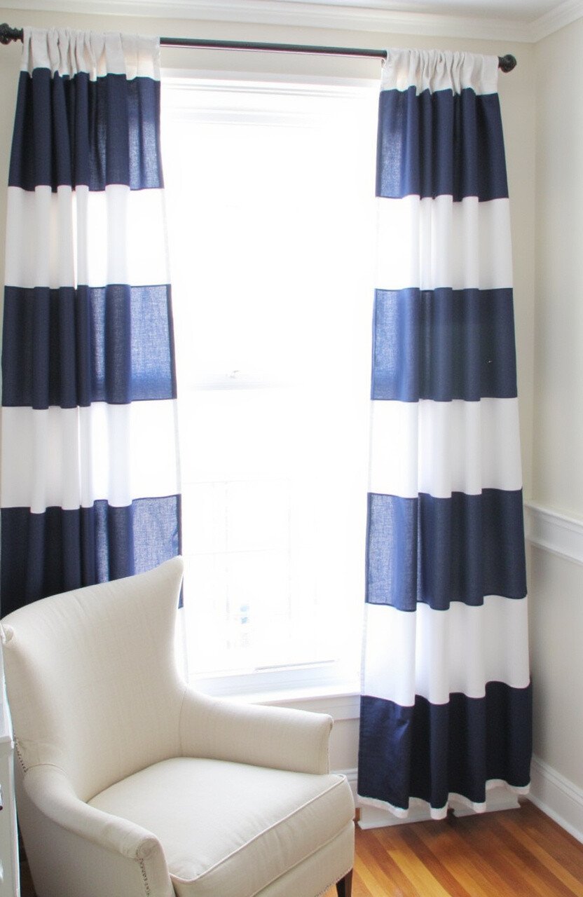 Navy blue striped curtains evoke the spirit of the sea, adding a nautical flair to your room. Picture them flowing elegantly in the breeze, making any space feel fresh and airy.