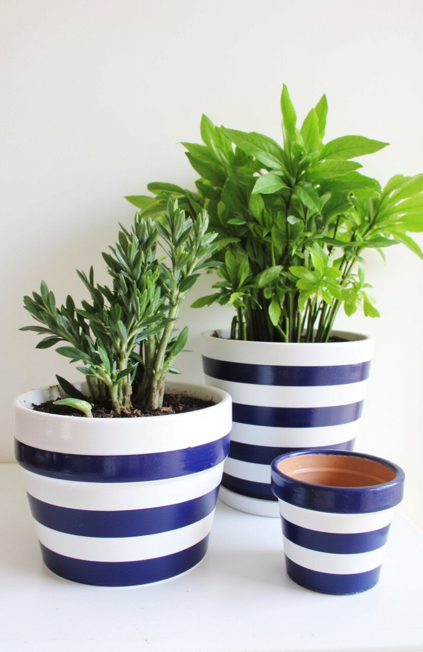 Get creative with navy striped planters for your indoor or outdoor plants. They add a modern touch to your greenery.